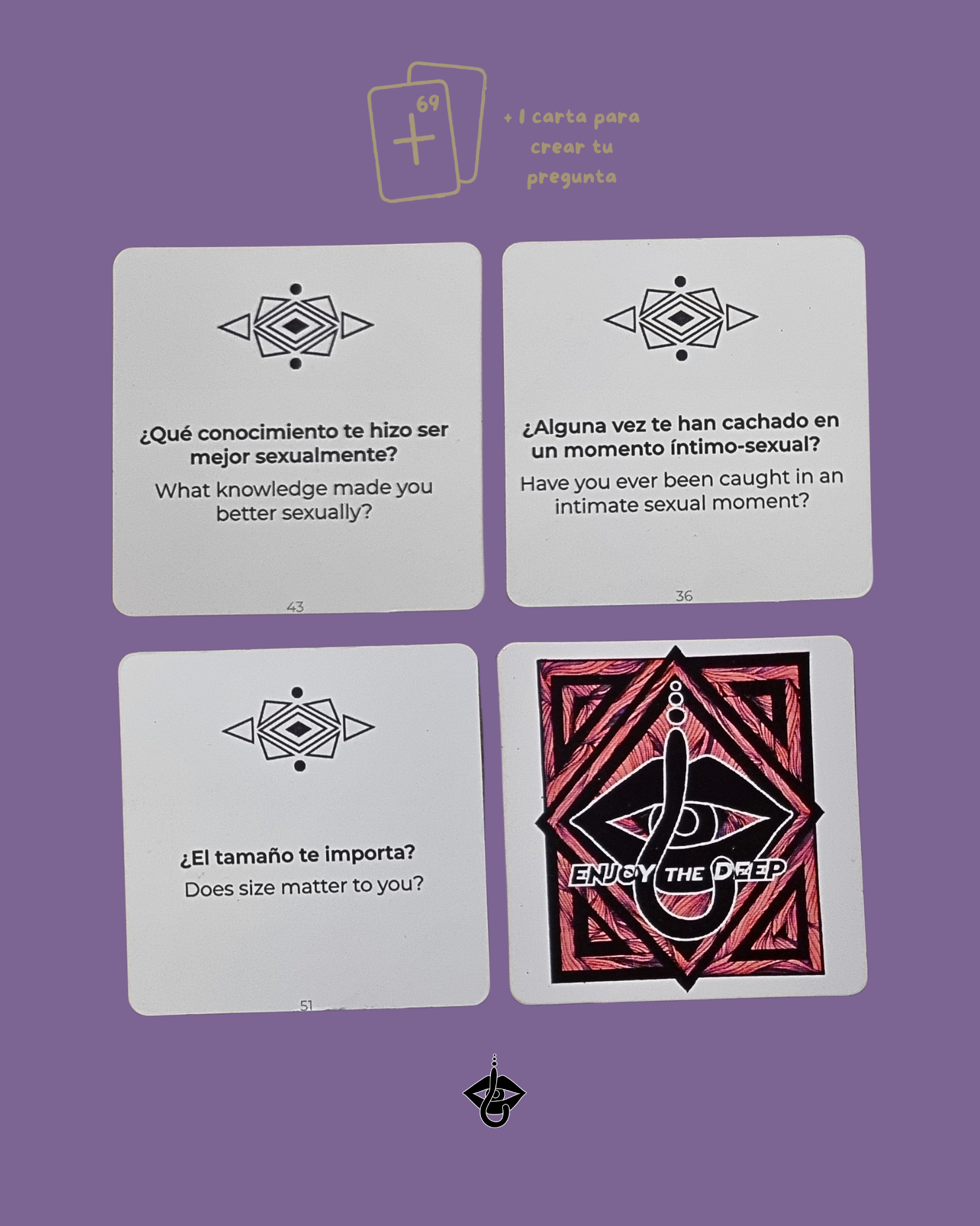 70 cartas; 69 preguntas y 1 carta en blanco para crear la tuya